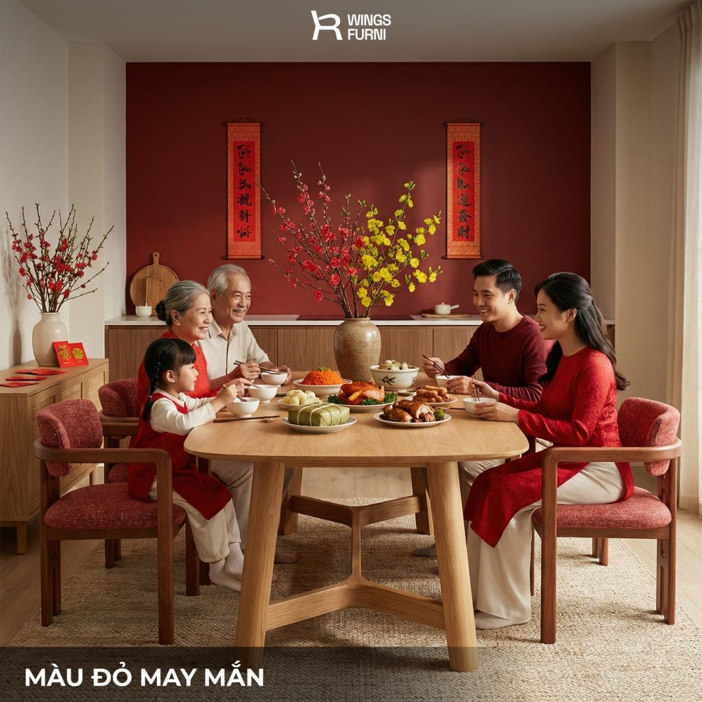 Vậy nên, WingsFurni gợi ý bạn 3 màu sắc bàn ghế hợp phong thủy, vừa giúp không gian thêm ấm cúng, vừa gửi gắm mong ước tài lộc – may mắn – bình an cho năm mới sắp đến.