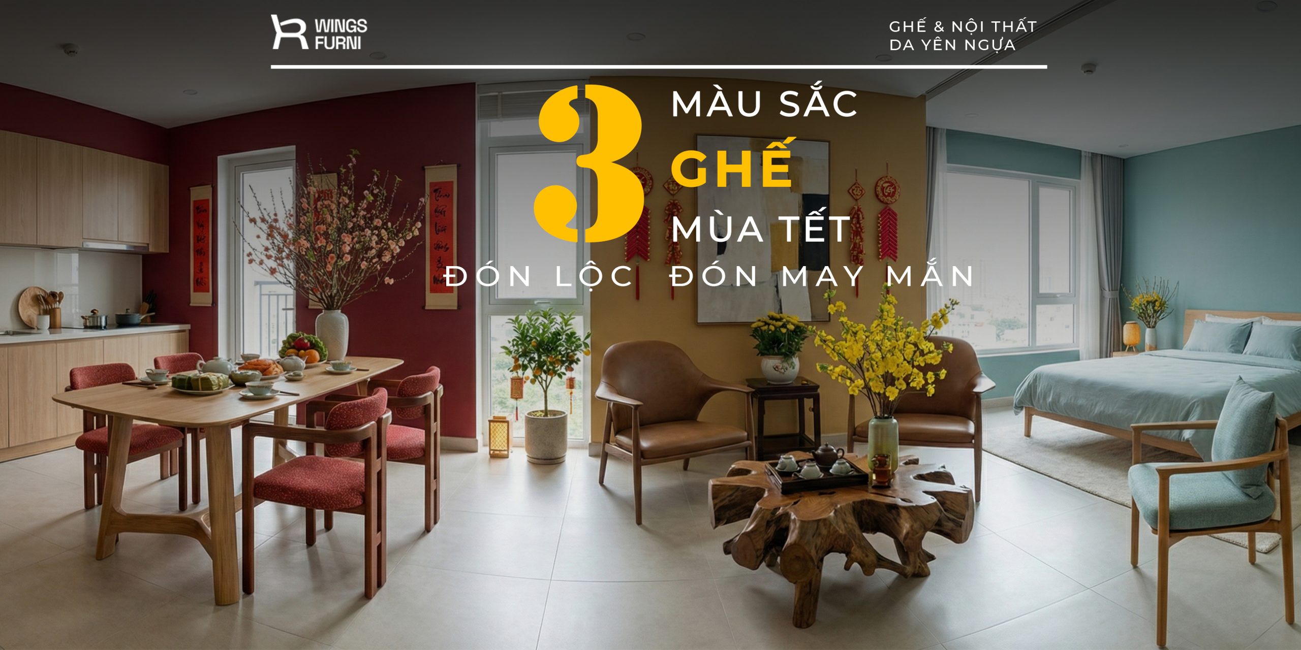 Tết là mùa của sum vầy và tiếp khách.Là nơi cả nhà quây quần bên mâm cơm đầu năm.Là chỗ bạn bè ngồi lại hàn huyên, chúc tụng, cười nói rôm rả. Một bộ bàn ghế đẹp, chỉn chu, màu sắc hài hòa không chỉ khiến ngôi nhà trông sang