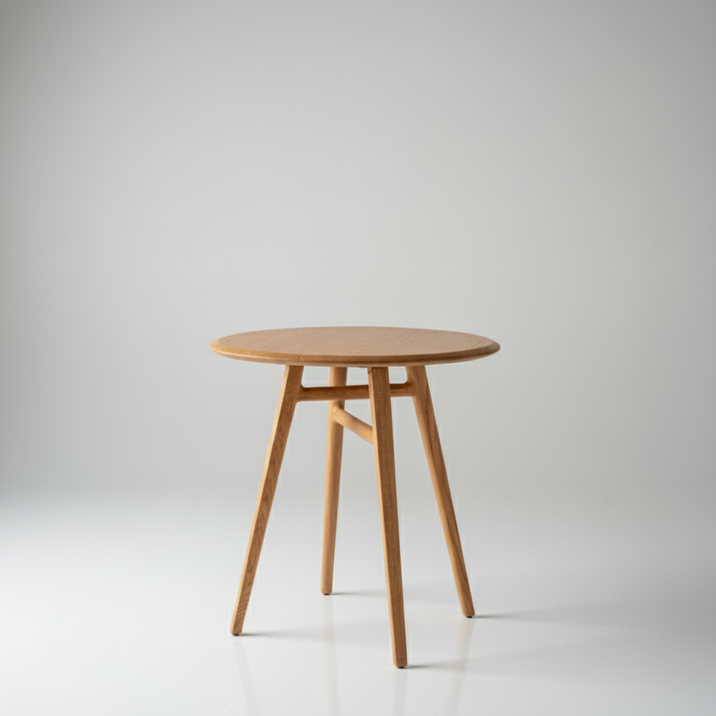 Brew Table sở hữu mặt bàn tròn gọn gàng, kết hợp cùng hệ chân gỗ thanh thoát, tạo nên một tổng thể cân đối và nhẹ nhàng.