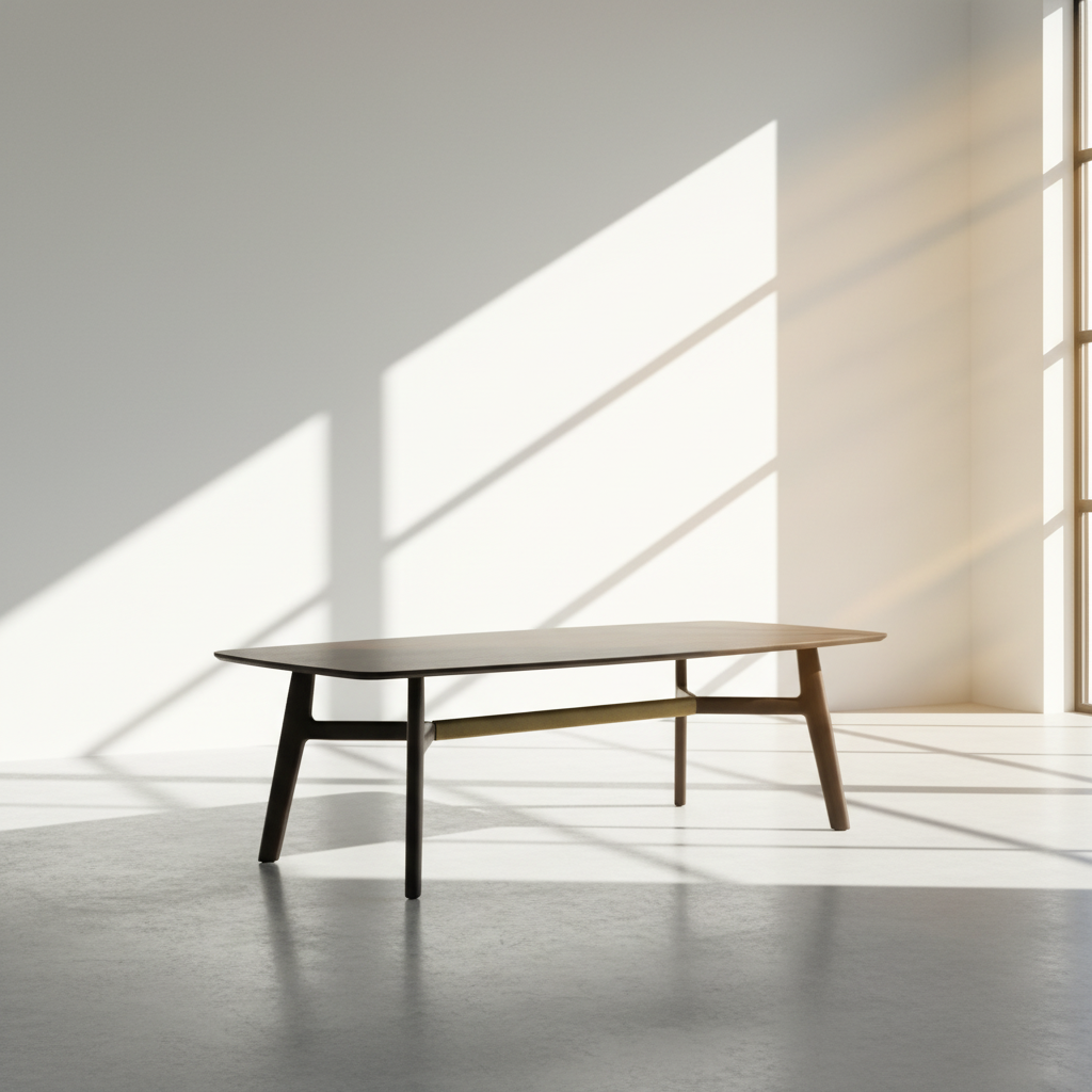 Sự kết hợp giữa mặt bàn trầm tính và hệ chân mạnh mẽ tạo nên một tổng thể hiện đại, chỉn chu và có cá tính riêng.