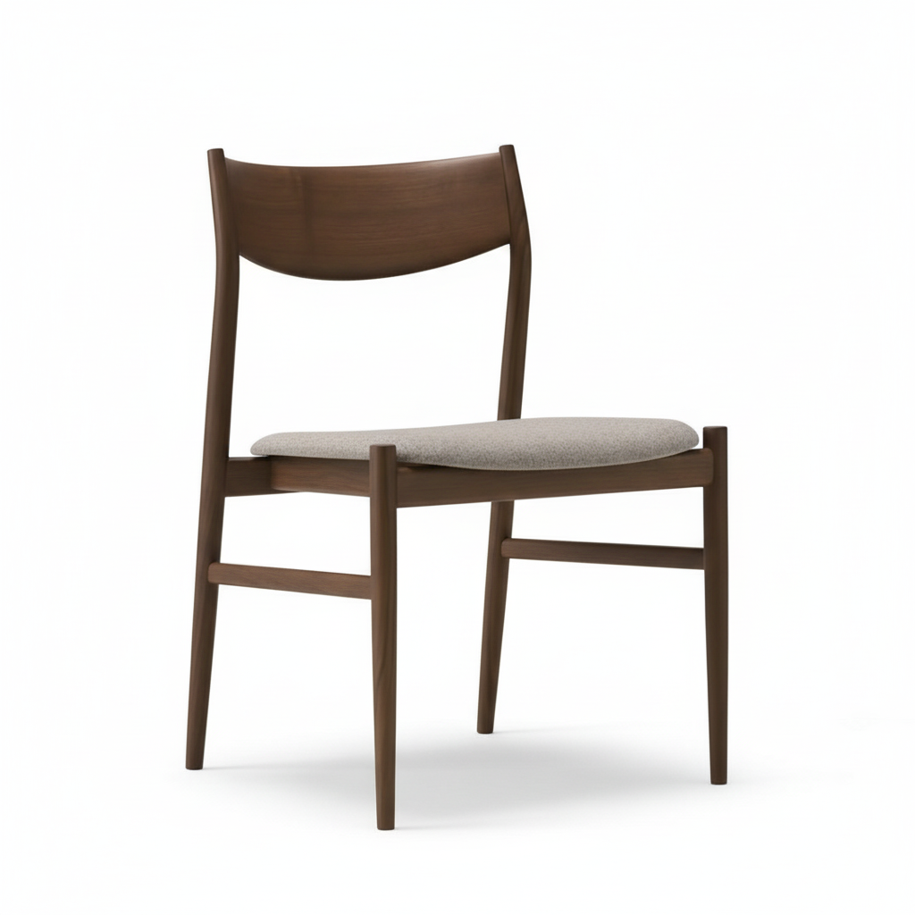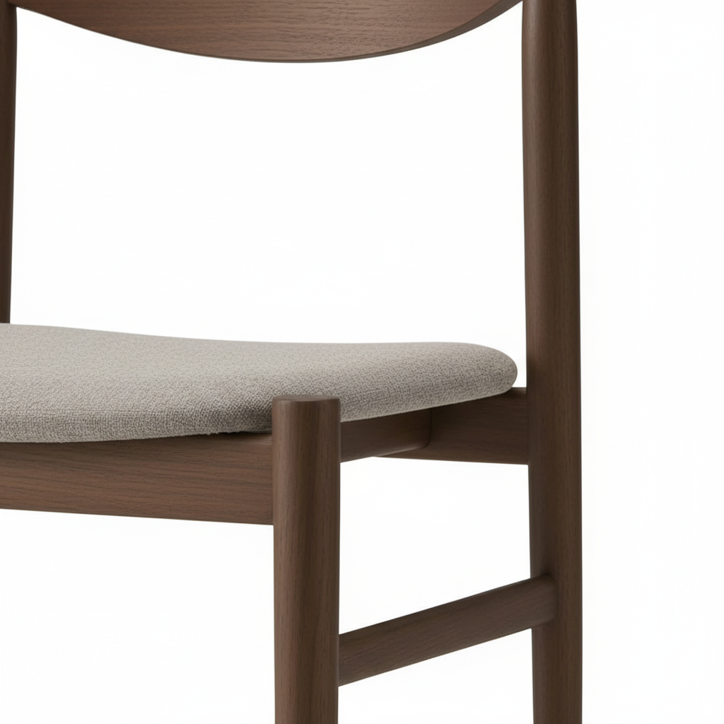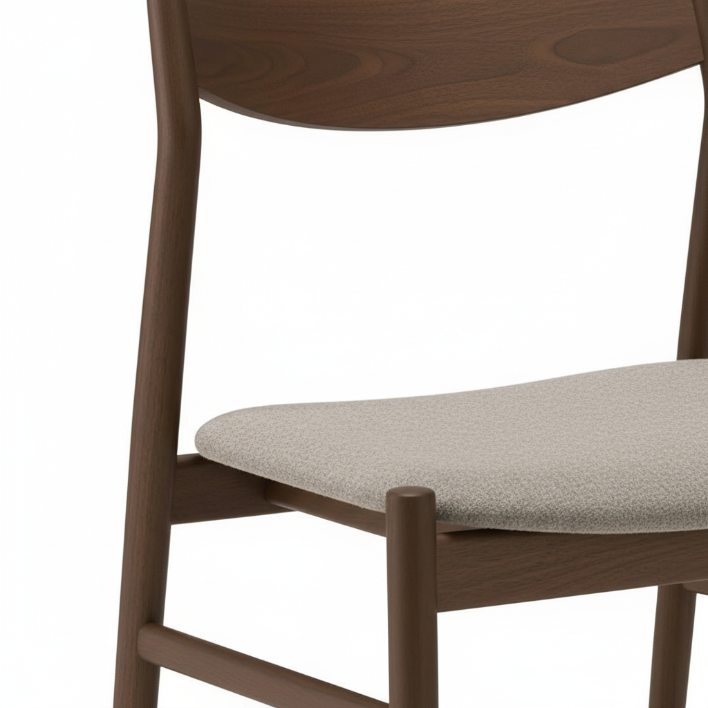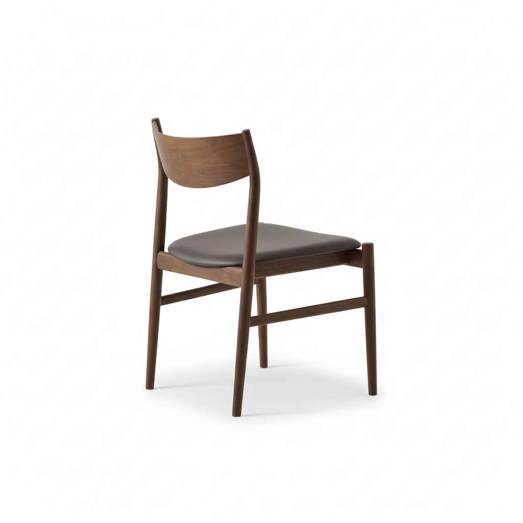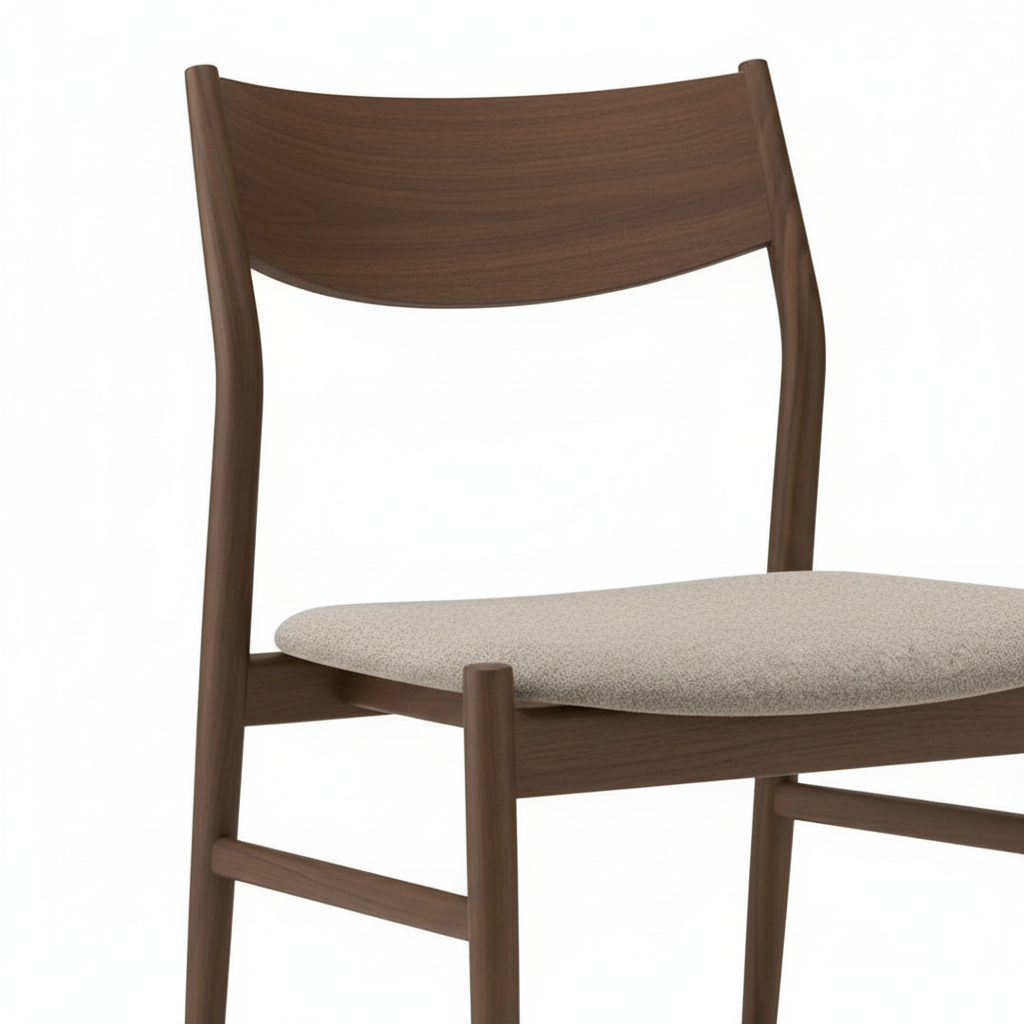 Tựa lưng gỗ cong nhẹ vừa đủ để tạo điểm tựa thoải mái, đồng thời giữ cho tổng thể ghế luôn gọn gàng và tinh tế.