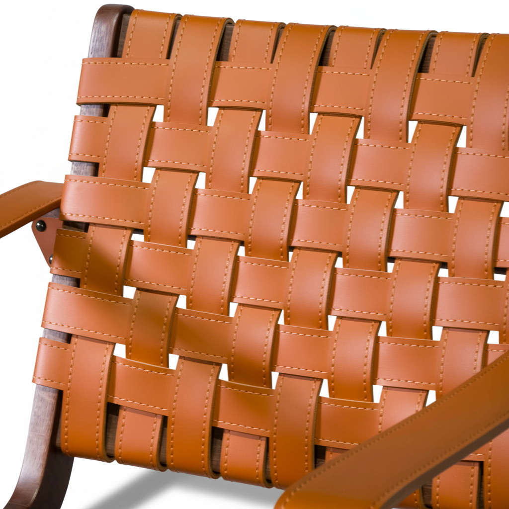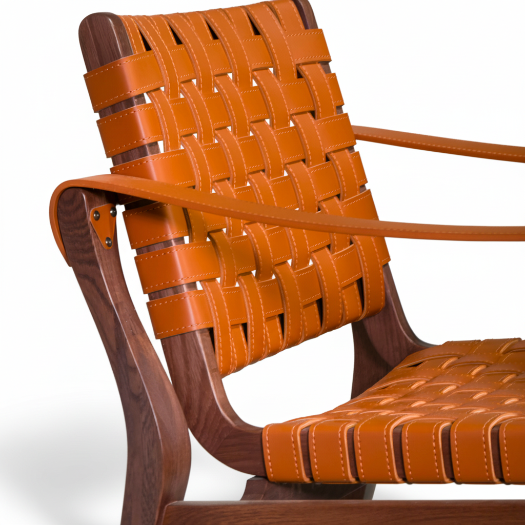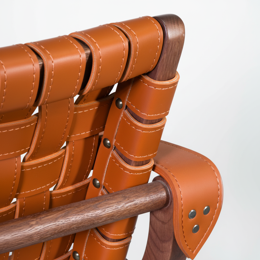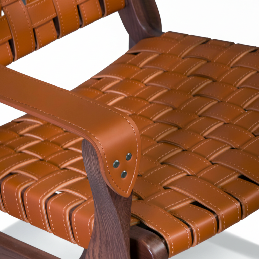 Khung ghế chế tác từ gỗ sồi bền chắc, kết hợp với da yên ngựa cao cấp . Từng chi tiết như tay vịn cong mềm mại hay lớp đệm ngồi dày dặn đều được xử lý thủ công cẩn thận, mang lại cảm giác thư giãn tuyệt đối.
