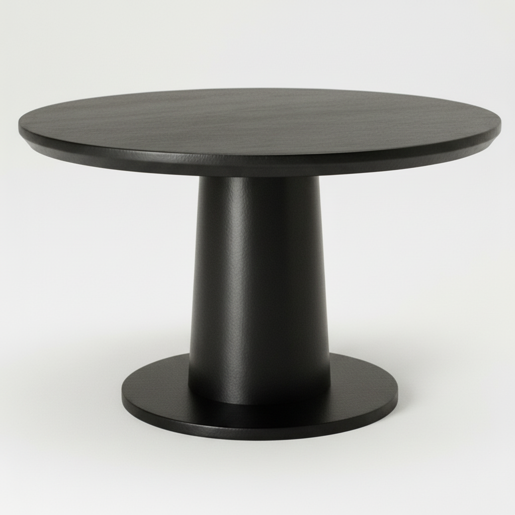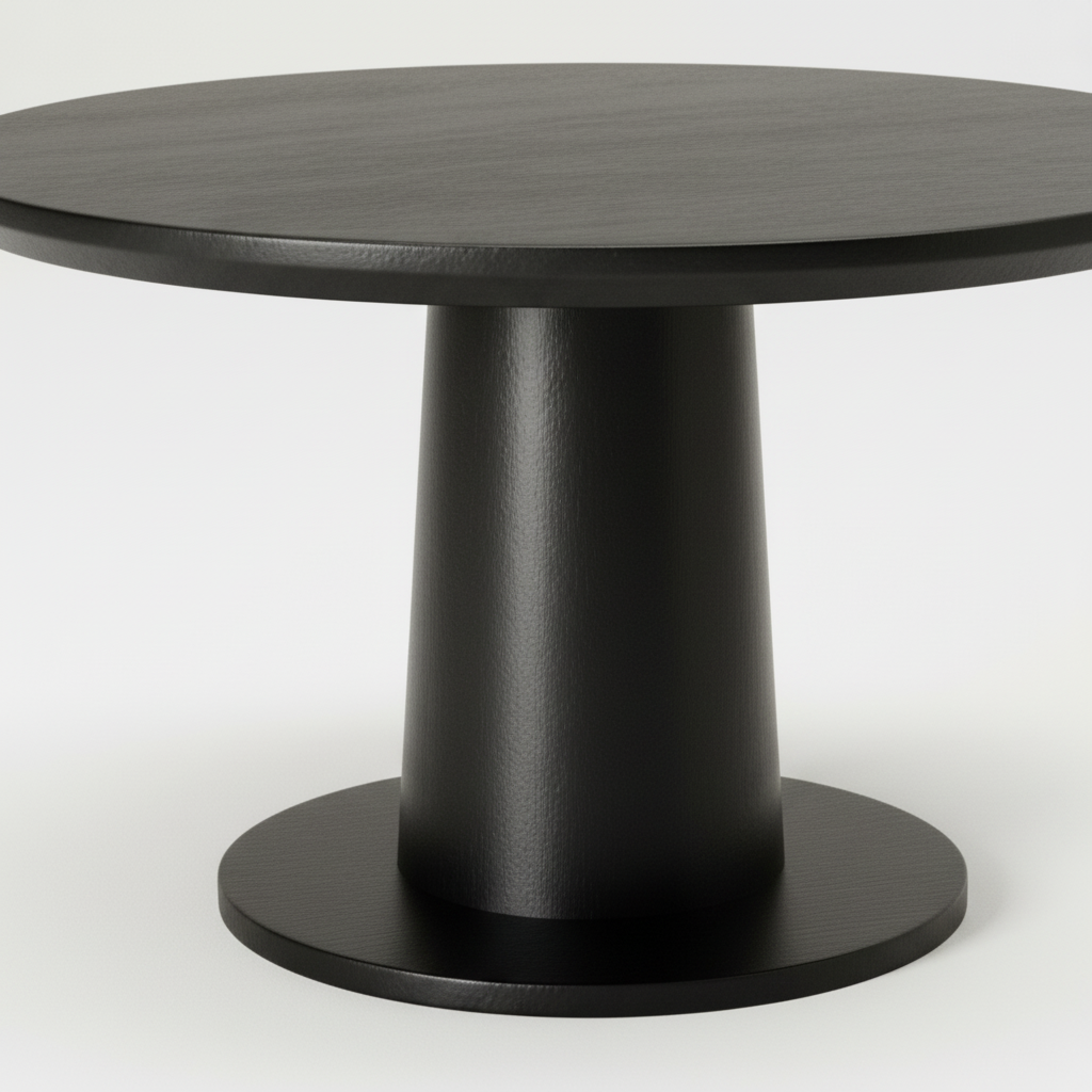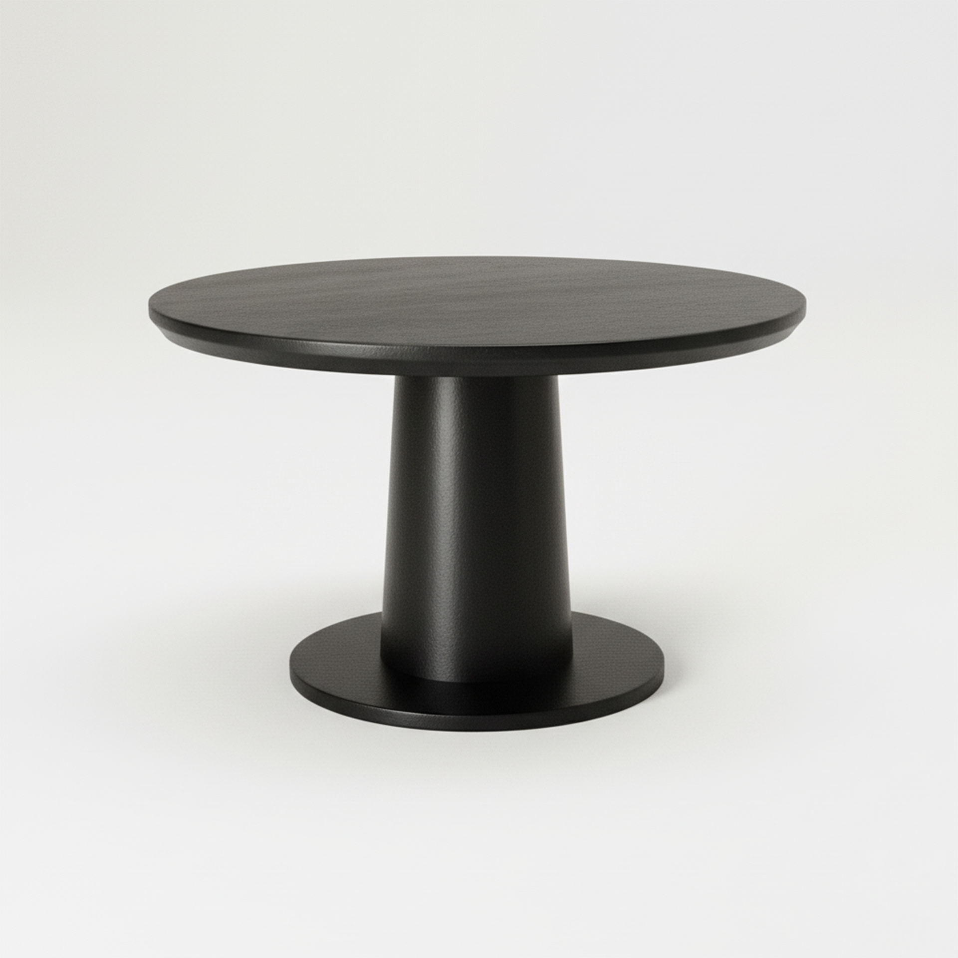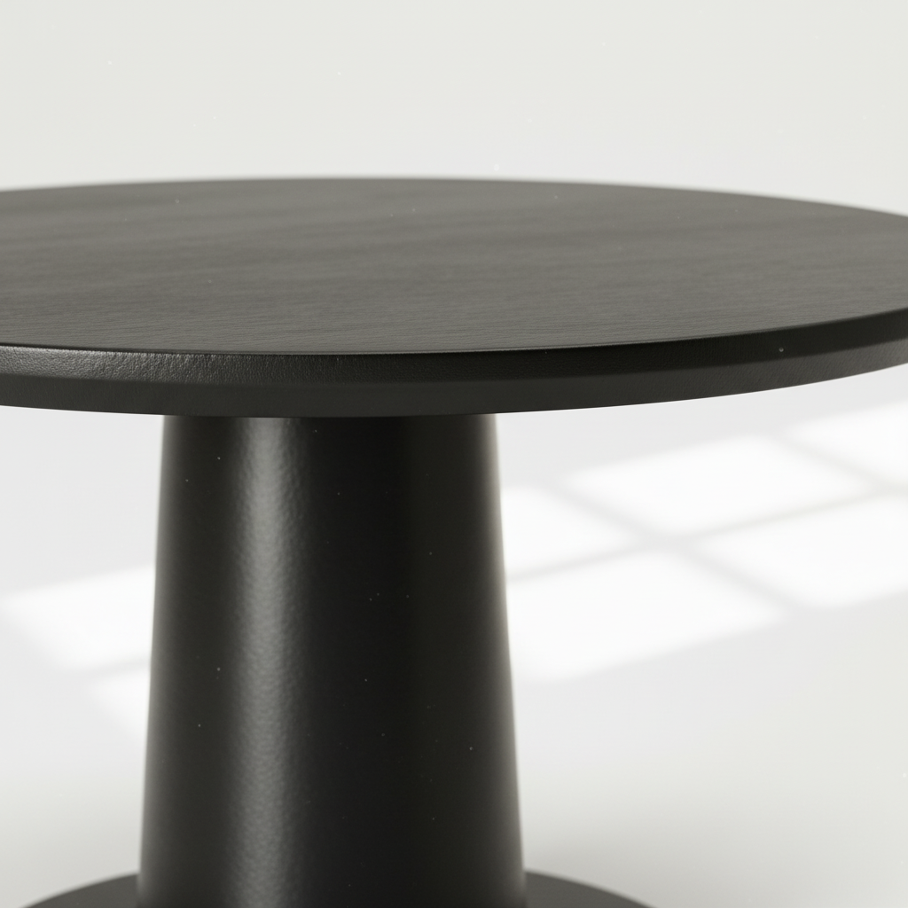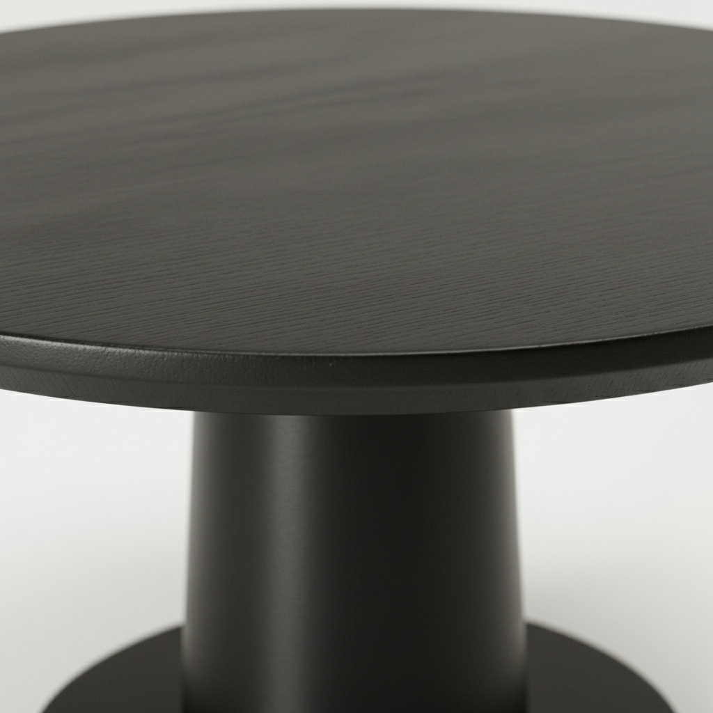 Halo Table sở hữu mặt bàn tròn, kết hợp cùng chân trụ trung tâm và đế tròn bản lớn, tạo nên một tổng thể liền mạch và ổn định.