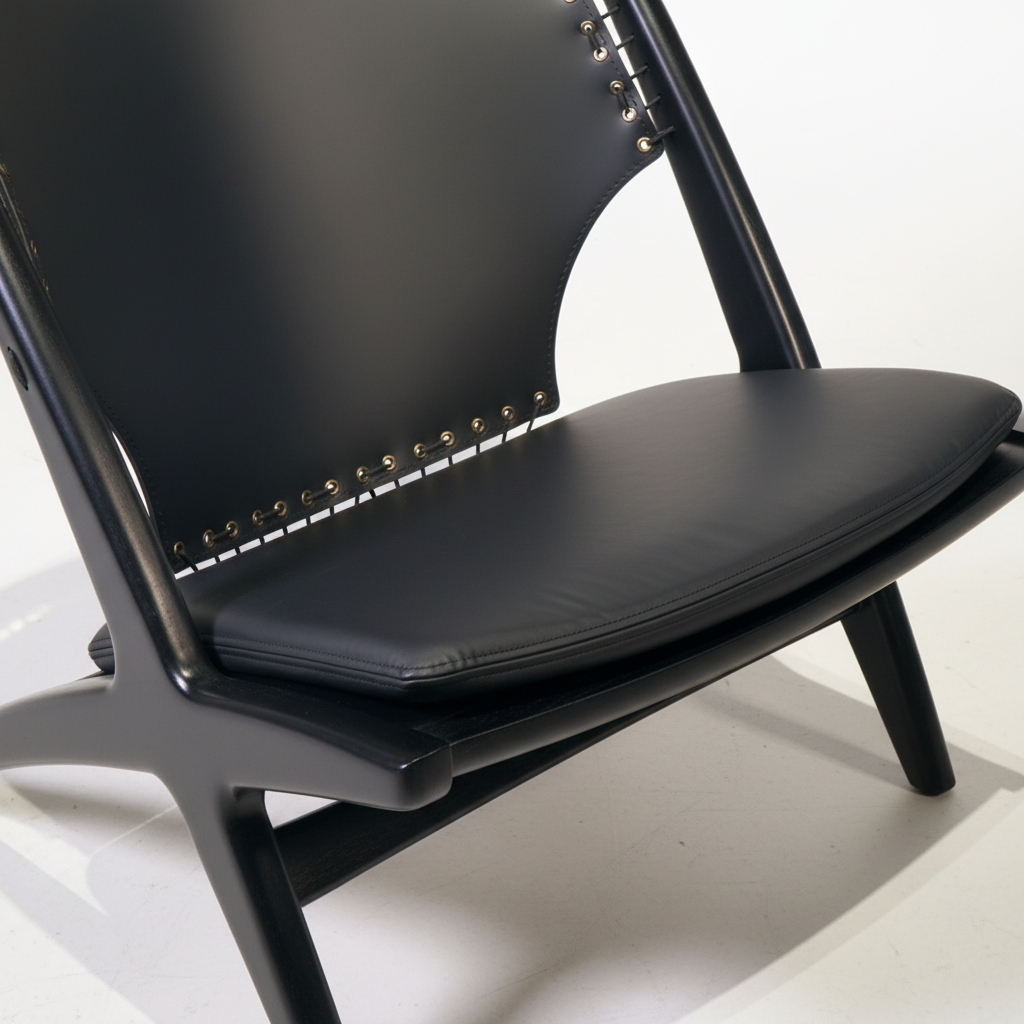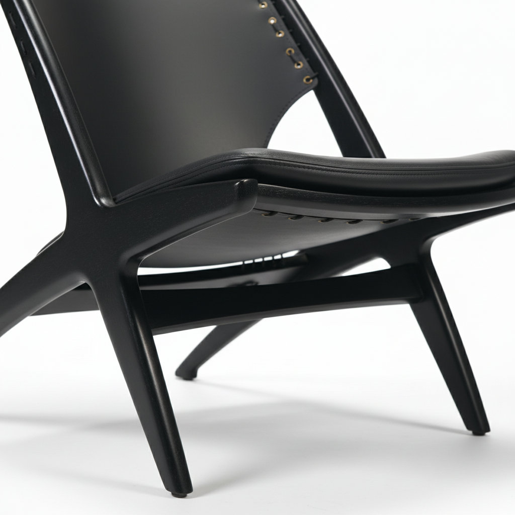 Chiếc ghế gây ấn tượng ngay từ ánh nhìn đầu tiên bởi dáng chân chữ thập đặc trưng, tạo nên một silhouette mạnh mẽ nhưng vẫn đầy tinh tế – biểu trưng cho vẻ đẹp bền vững vượt qua mọi xu hướng.