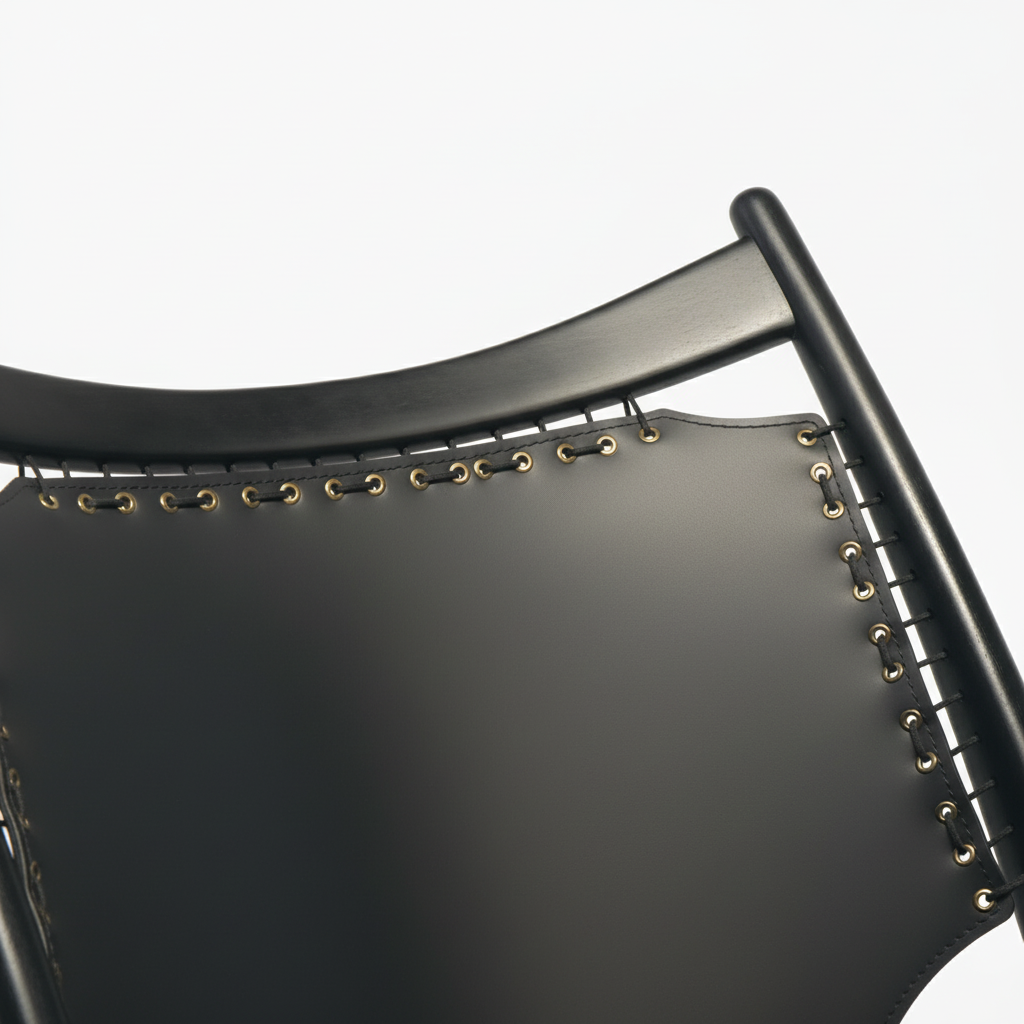 Phần tựa lưng của Moss Chair được tạo nên từ một tấm da liền, khâu trực tiếp vào khung và căng nhẹ như một cánh buồm đón gió.