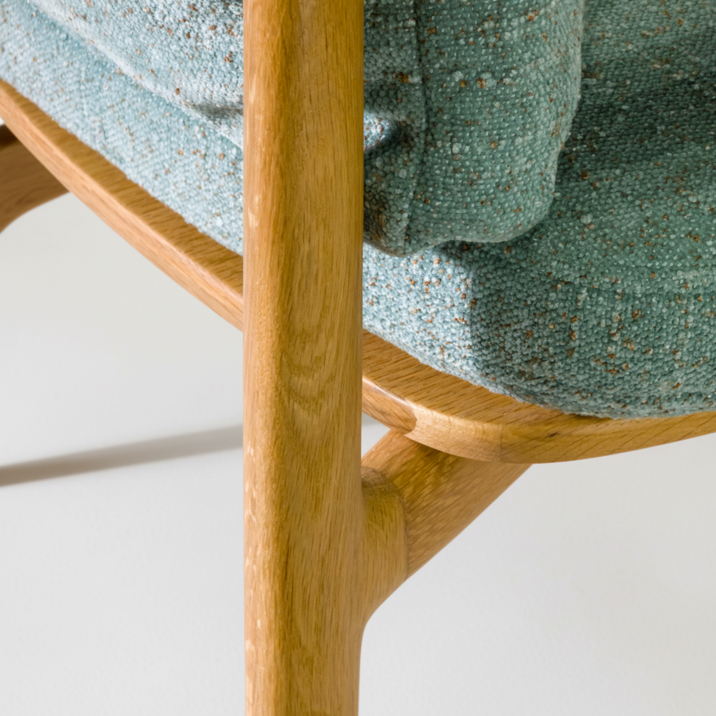 Khung ghế Rumi Chair được thiết kế thanh mảnh nhưng chắc chắn, tạo cảm giác an tâm khi sử dụng thường xuyên.