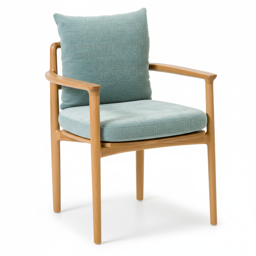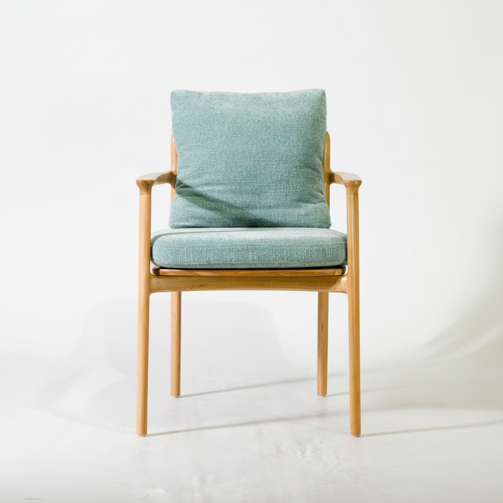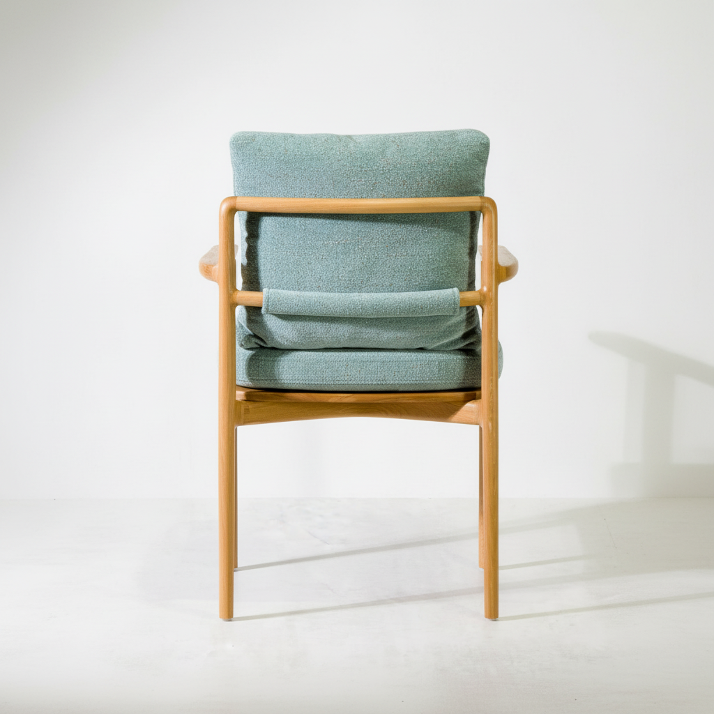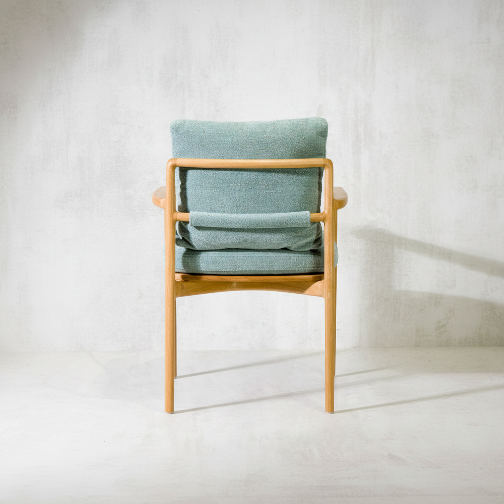 Rumi Chair là ghế ăn thiết kế tinh tế với đệm ngồi dày, tựa lưng mềm mại và gối tựa rời. Kiểu dáng cân bằng, êm ái, phù hợp cho phòng khách, lounge và không gian nghỉ ngơi cao cấp.