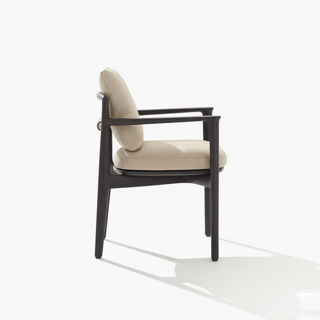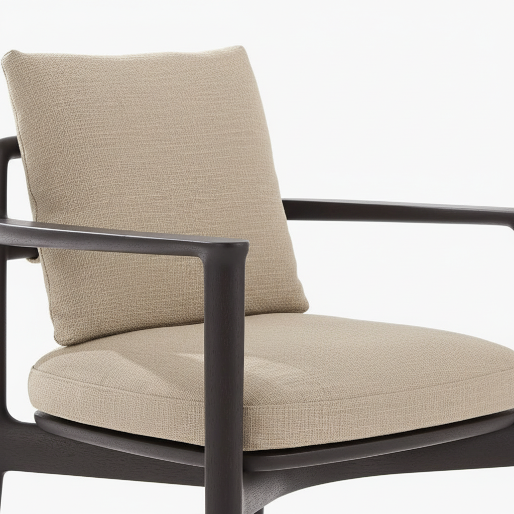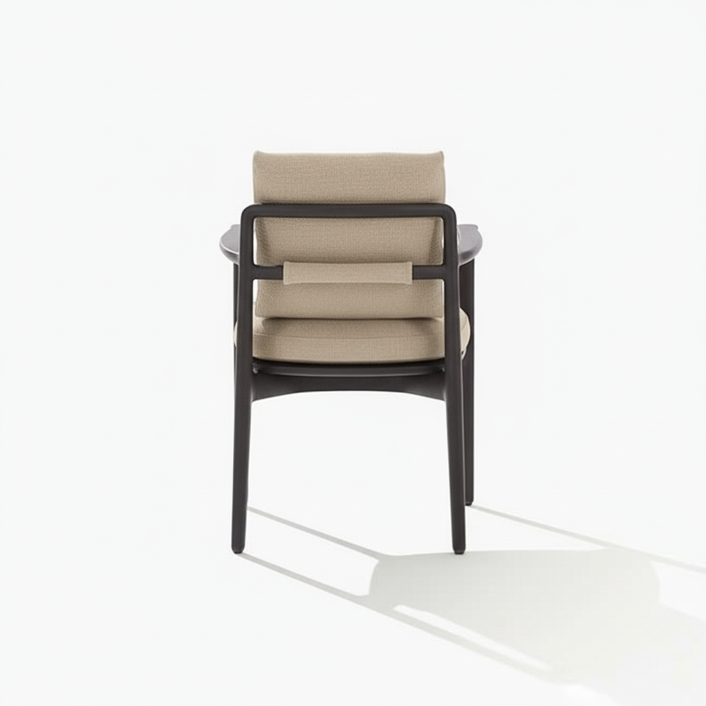 Tựa lưng có độ nghiêng vừa phải, kết hợp cùng gối tựa rời, giúp nâng đỡ tốt cho lưng và vai – đặc biệt phù hợp với những bữa ăn dài hoặc không gian dùng bữa kết hợp tiếp khách.