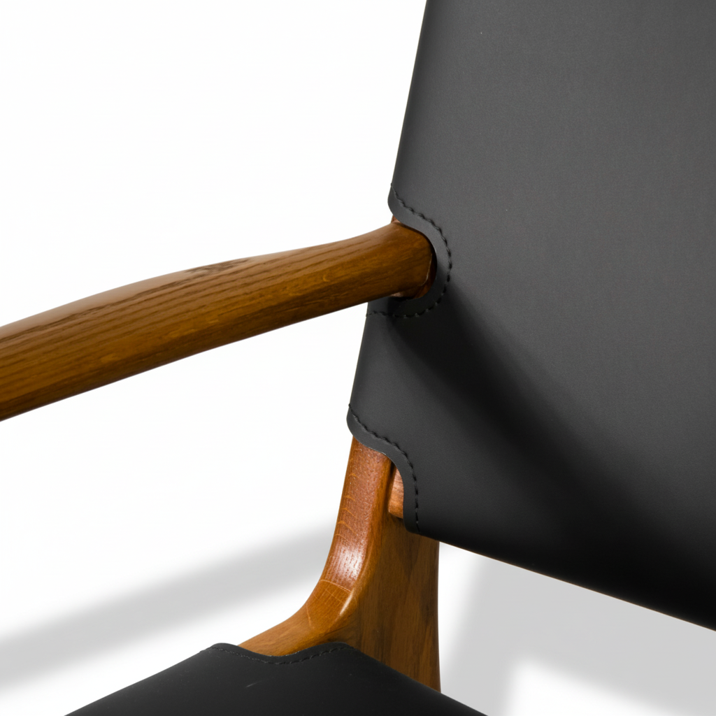 Lớp da tạo điểm nhấn thị giác sang trọng, đồng thời giúp ghế dễ vệ sinh và phù hợp cho cả không gian gia đình lẫn nhà hàng, F&B cao cấp.