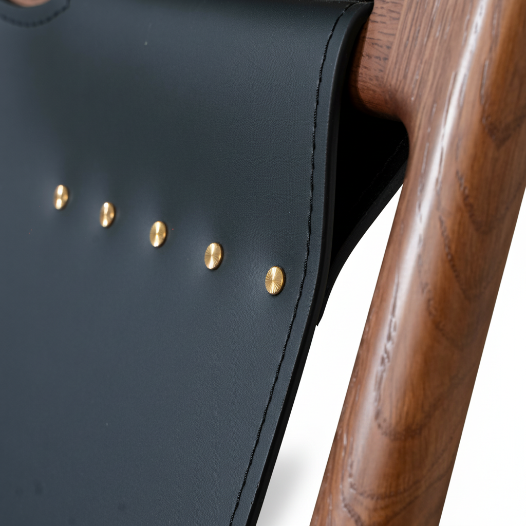 Với khung ghế bằng gỗ sồi Mỹ tự nhiên và mặt ngồi bằng da yên ngựa cao cấp, Woodie Chair mang đến cảm giác chắc chắn, êm ái và sang trọng trong từng chi tiết.