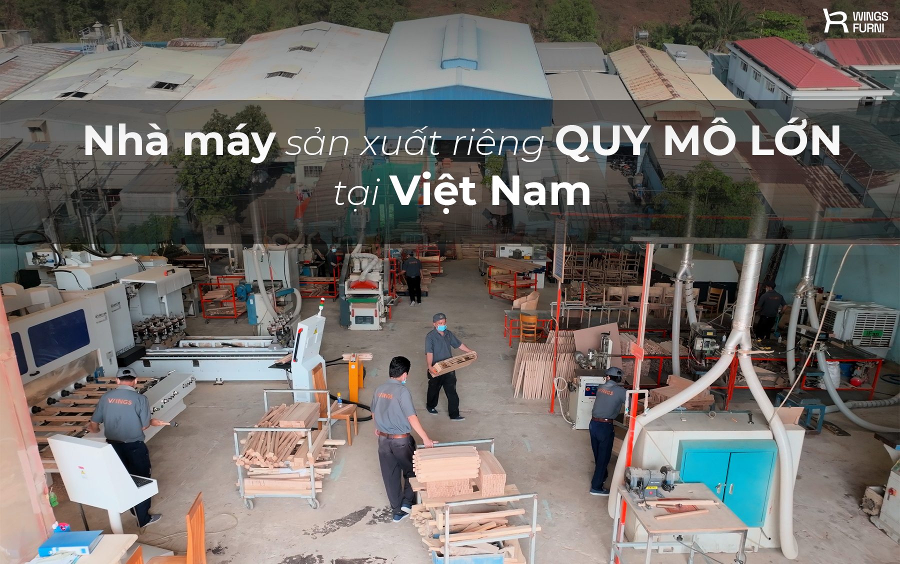 Sở hữu nhà máy 2.500m² cùng đội ngũ nghệ nhân lành nghề, WingsFurni đảm bảo năng lực sản xuất lên đến 2.000 bàn ghế mỗi tháng.